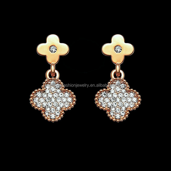 2015 ultimo signora della moda cristallo placcato oro felicità trifogli orecchini