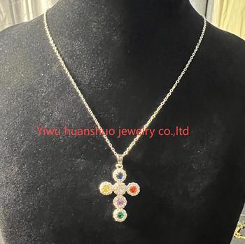 2025 새로운 디자인 깜박이는 모조 다이아몬드 십자가 목걸이