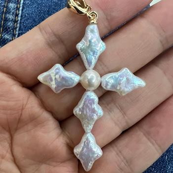 2025 최신 바로크 진주 십자가 목걸이